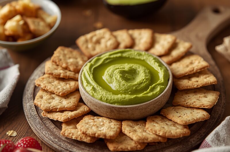 Avocado Hummus with Crackers A Creamy