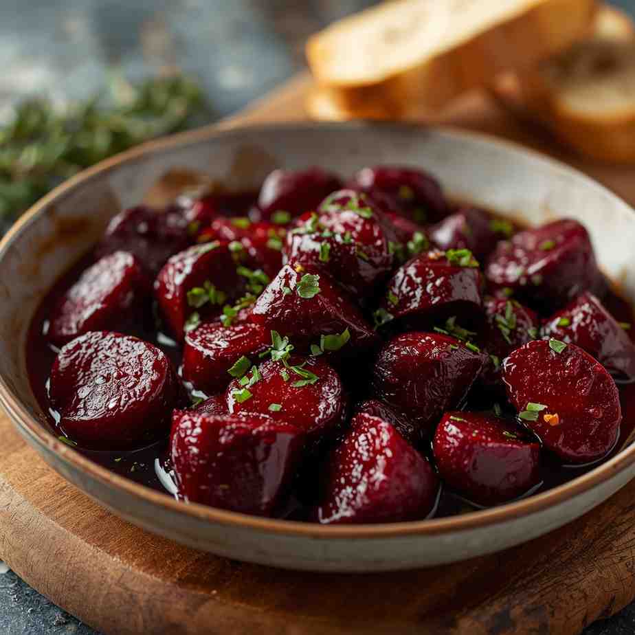 6. Serve: Transfer beets to a serving dish. Garnish with fresh thyme, parsley, or crumbled goat cheese, if desired.