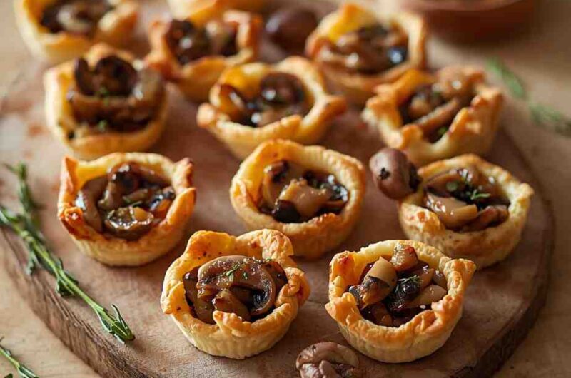 Caramelized Mushroom Tartlets are elegant, savory mini pastries filled with golden-brown mushrooms, caramelized onions, herbs, and creamy cheese — all nestled in a crisp, buttery tart shell. These little bites are full of deep umami flavor, with a touch of sweetness from the caramelized onions and a luxurious richness that makes them irresistible.