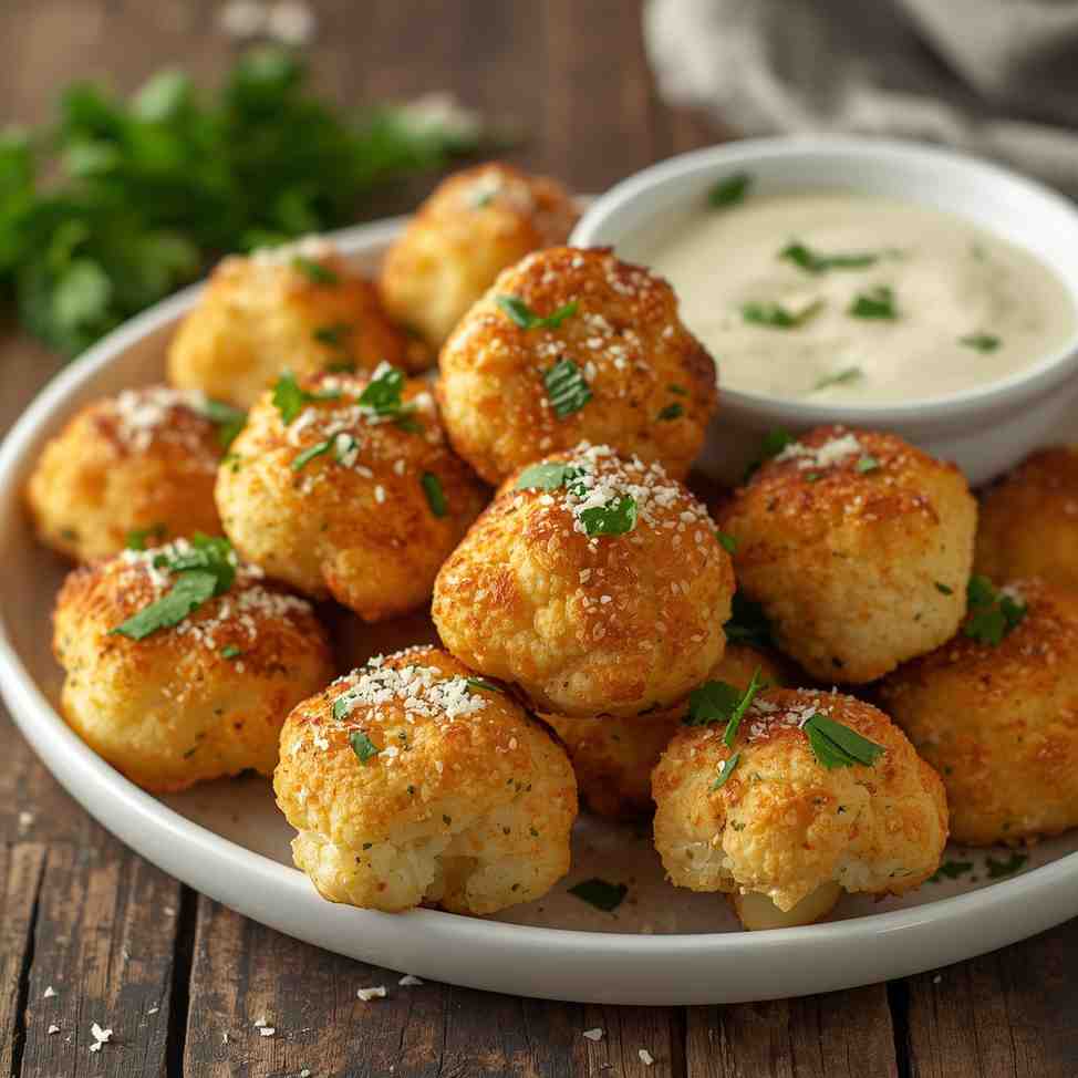Cheesy Garlic Cauliflower Bites