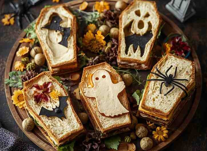 - Arrange sandwiches on a platter with Halloween-themed decorations or garnishes.