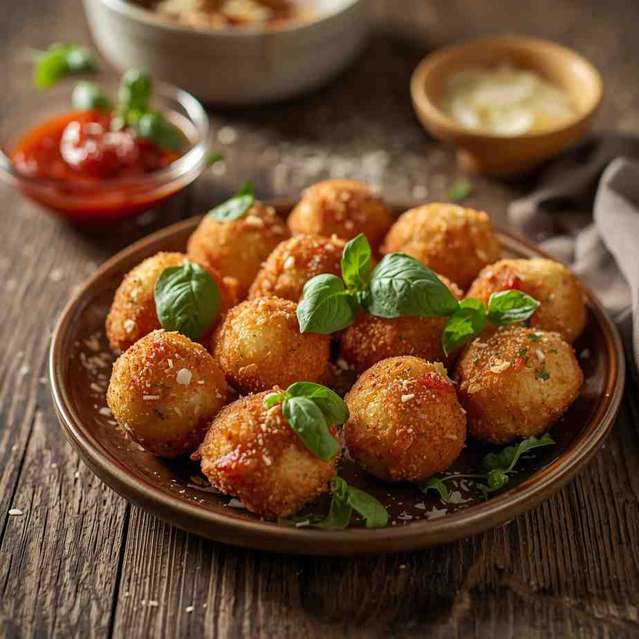 Each bite bursts with the creamy, cheesy flavor of melted mozzarella wrapped in a crispy, seasoned breadcrumb coating.