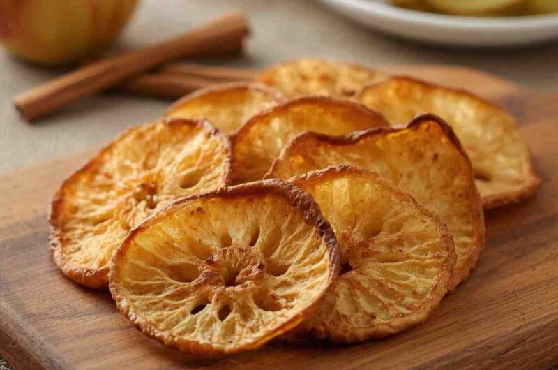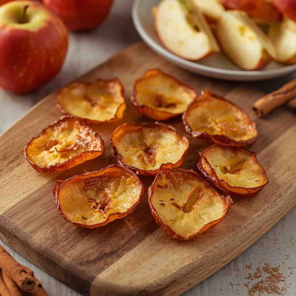 Crispy baked apple chips are a healthy, naturally sweet snack made from thinly sliced apples baked to perfection. They are lightly crisp, subtly chewy, and carry the natural flavor and sweetness of apples without any added preservatives.