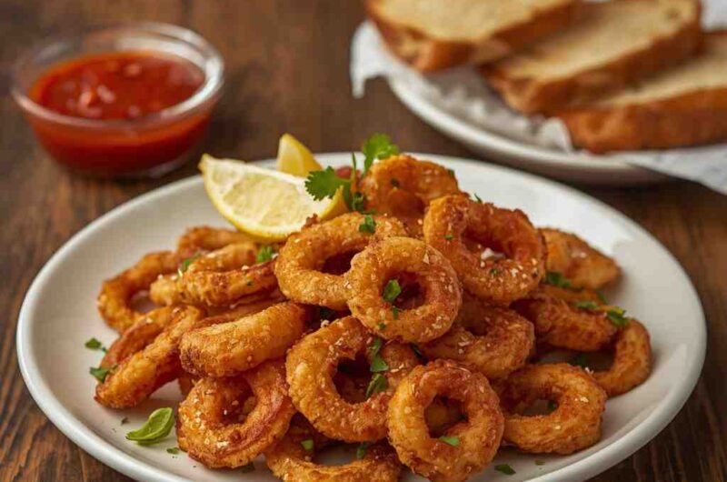 Crispy Fried Calamari Rings are best served immediately after frying while they’re still hot and crunchy. Arrange them on a platter with lemon wedges and a bowl of marinara or garlic aioli on the side. They make an excellent starter for seafood dinners or can be served as part of a tapas spread alongside grilled shrimp or bruschetta.
