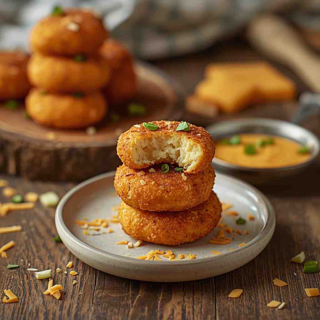 These potato-based delights are made from mashed potatoes blended with sharp cheddar cheese, lightly seasoned, shaped into cylinders or balls, coated with breadcrumbs, and deep-fried or air-fried to perfection.