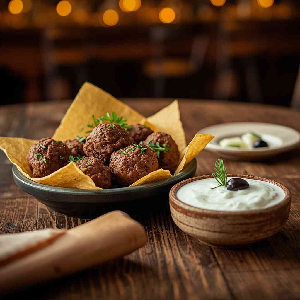 - Step 5: Serve : Arrange the warm meatballs on a platter. Serve with a bowl of chilled Tzatziki sauce, lemon wedges, and a sprinkle of fresh herbs.