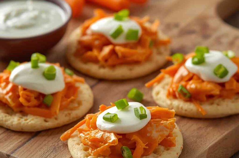 Mini Buffalo Chicken Flatbreads are the perfect blend of spicy, cheesy, and savory flavors — all packed onto bite-sized flatbreads. These mini delights feature tender shredded chicken tossed in tangy buffalo sauce, layered with creamy ranch or blue cheese, melted mozzarella, and fresh toppings.