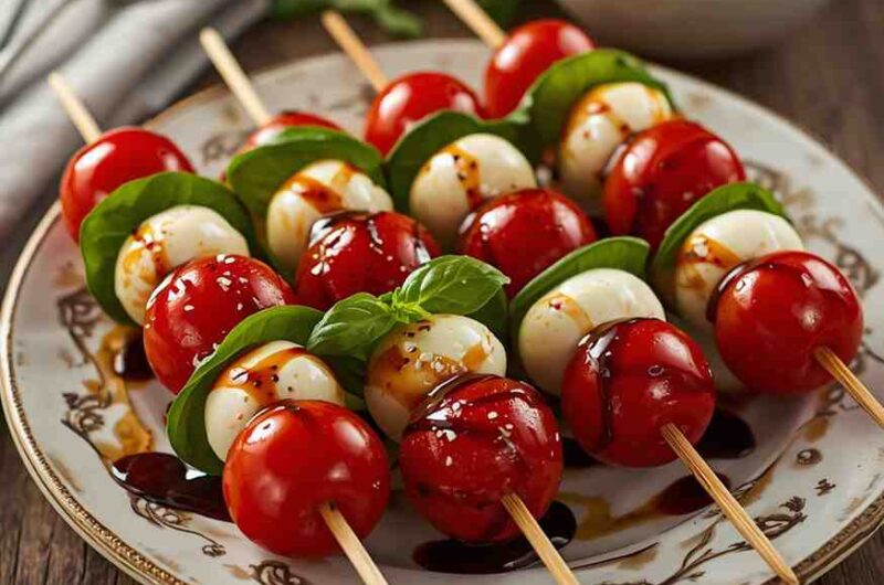 Mini Caprese Skewers with Balsamic Drizzle are the definition of simplicity meeting sophistication. With their fresh ingredients, beautiful presentation, and balanced flavors, they’re perfect for any gathering — from elegant dinner parties to casual picnics.