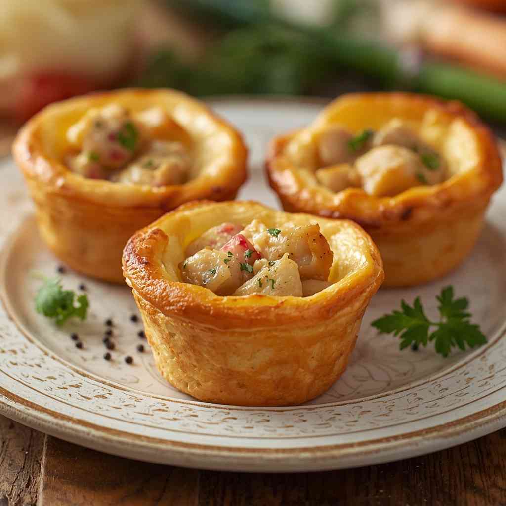 - Cheesy Chicken Pot Pie Cups: Add shredded cheddar or mozzarella cheese into the filling for a rich, creamy flavor.