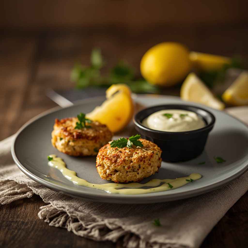 • Step 5: Serve : Arrange crab cakes on a serving platter. Serve warm with lemon aioli on the side for dipping. Garnish with lemon wedges and extra chopped parsley if desired.