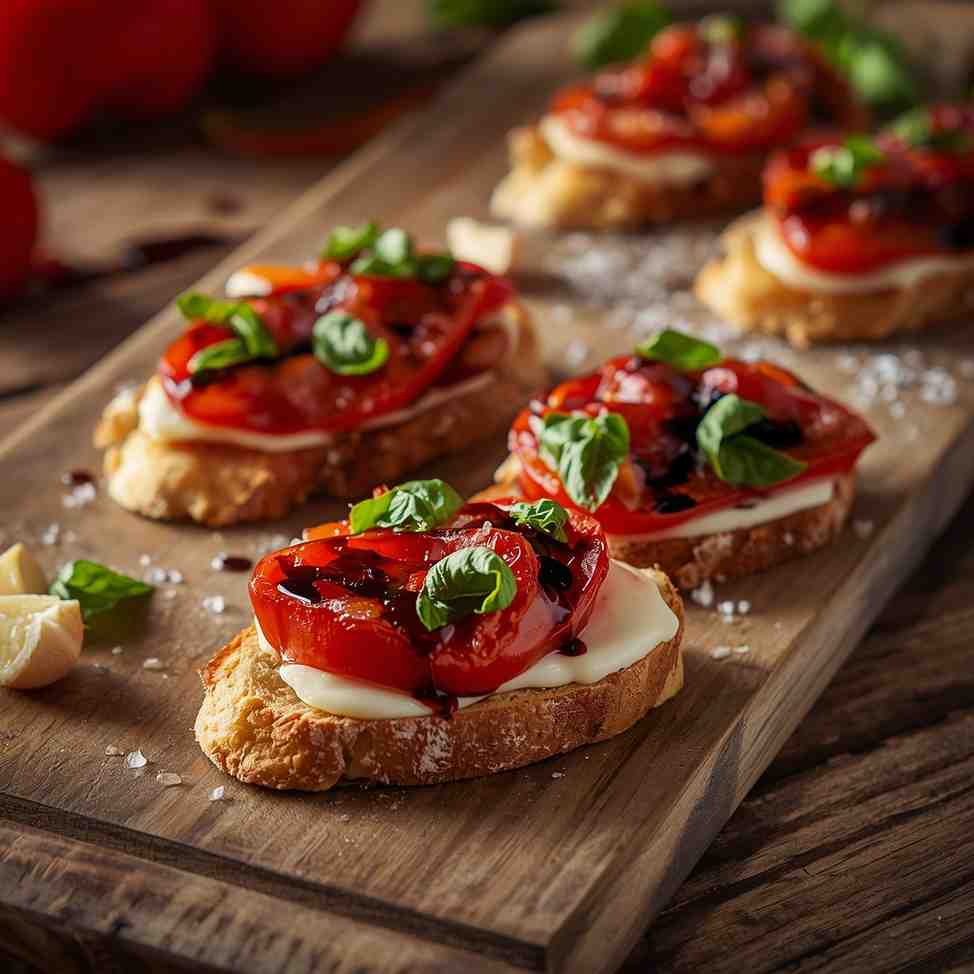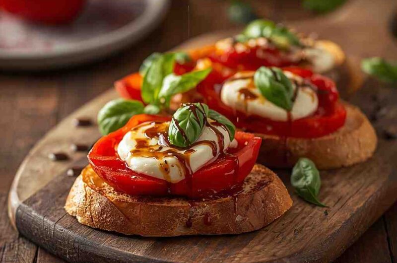 I love this recipe because it combines bold, rustic flavors with minimal effort. The sweetness of the roasted red peppers, the aroma of garlic, and the touch of tangy balsamic come together in perfect harmony. It’s an appetizer that feels fancy but is incredibly easy to prepare. It’s also visually stunning — the bright red topping over golden toast makes it as beautiful as it is delicious. Whether served at a family dinner or a festive event, this bruschetta always steals the show.
