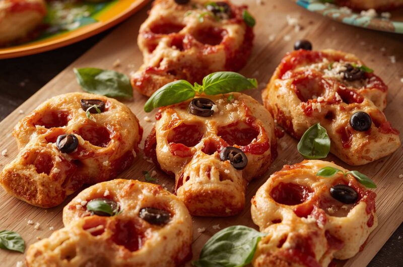 Pizza is always a crowd-pleaser, and these Skull-Shaped Mini Pizzas take the classic favorite and give it a creepy Halloween twist. Using simple ingredients like pizza dough, sauce, cheese, and toppings, you can bake them in skull-shaped molds or carve them into skull outlines. The result is fun, cheesy, and delightfully spooky – a guaranteed hit at Halloween parties, family dinners, or even themed movie nights.