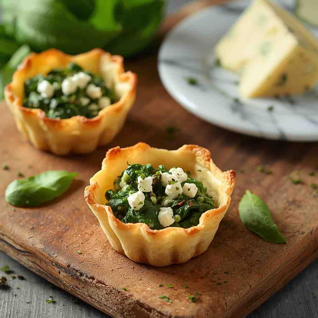 - Step 4: Fill and Bake : Spoon 1 tablespoon of spinach-feta filling into each pastry cup. Brush the exposed pastry edges with melted butter or olive oil. Bake for 18–20 minutes or until the pastry is golden and puffed. Remove from oven and let cool slightly before serving.