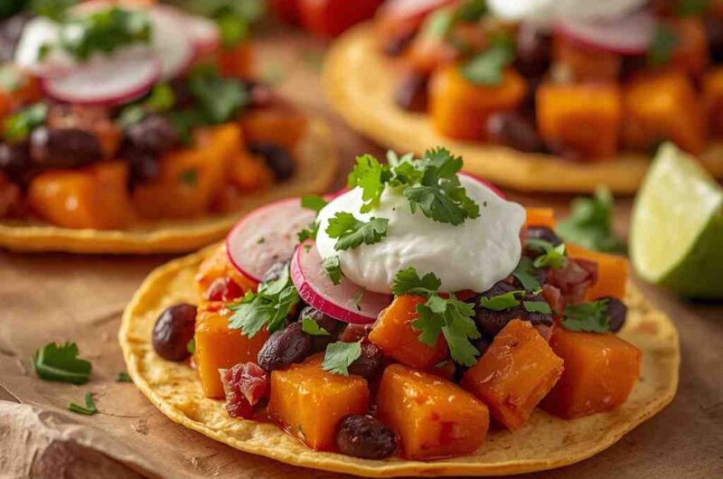 These tostadas are perfect for a quick lunch, light dinner, or casual entertaining. The sweet potatoes provide natural sweetness and creaminess, while the black beans add hearty texture and protein. Fresh toppings like cilantro, lime, and radishes brighten each bite, making this a wholesome and irresistible meal.