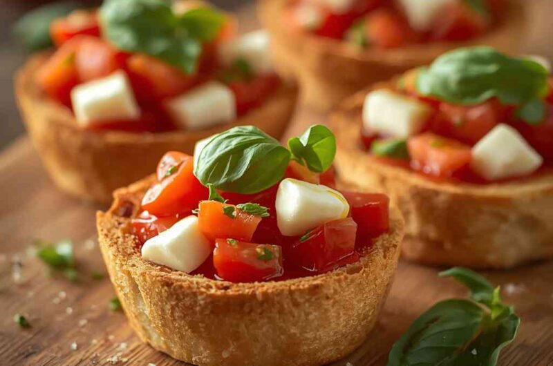 Tomato Mozzarella Bruschetta Cups are the perfect bite-sized appetizer for any occasion. Bursting with fresh flavors of ripe tomatoes, creamy mozzarella, and fragrant basil, these little cups are both visually stunning and delicious.