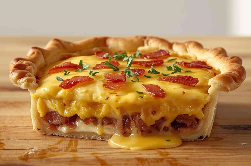The Bacon and Cheese Breakfast Pie is a warm, savory, and satisfying breakfast that feels like a cozy morning hug in every bite. It combines crispy bacon, melty cheese, creamy eggs, and flaky pastry — all baked together into a golden, irresistible pie. This dish is perfect for brunch gatherings, lazy weekends, or when you want to treat yourself to something hearty and indulgent.