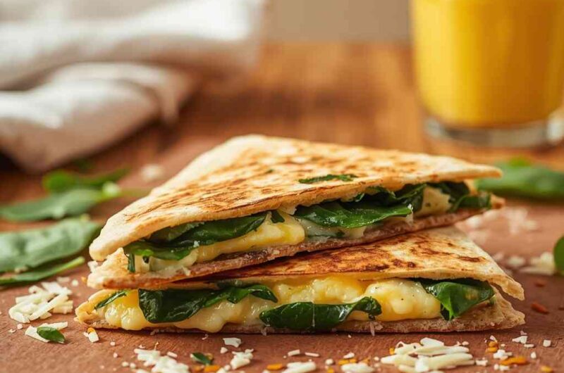 Breakfast Quesadilla with Spinach and Cheese is a warm, cheesy, and nutrient-packed dish that’s perfect for starting your day right. It combines fluffy scrambled eggs, melty cheese, and fresh spinach wrapped in a crispy, golden tortilla. Every bite is full of comforting flavors, melted goodness, and the slight crunch of the perfectly toasted wrap.