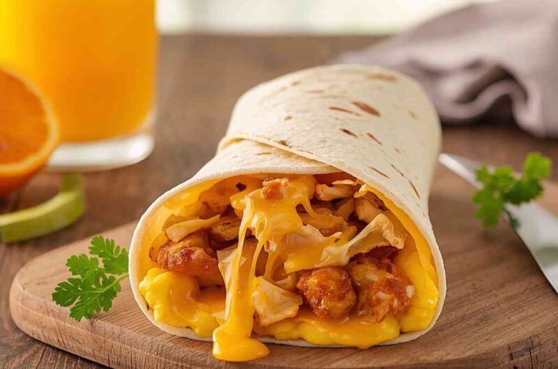I love this recipe because it’s versatile, filling, and customizable. It brings together everything I enjoy in a breakfast — eggs, cheese, and chicken — in one easy-to-eat wrap. The combination of savory ingredients and melted cheese wrapped in a warm tortilla is pure comfort.