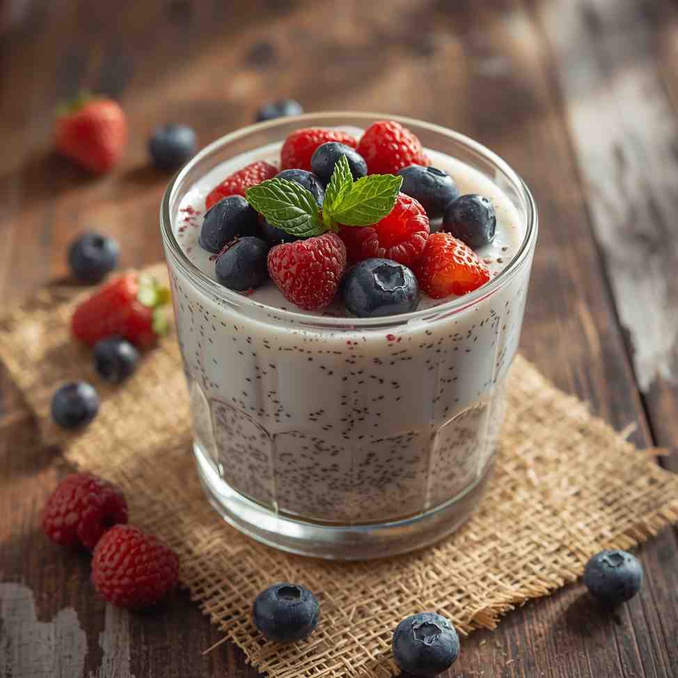 Serve chilled in small jars or bowls. Top generously with berries for freshness, and garnish with coconut flakes, nuts, or granola for added texture. Enjoy as a breakfast bowl, dessert cup, or mid-day snack.