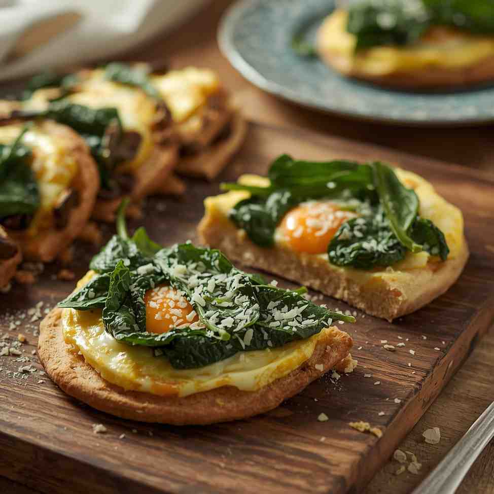 - Step 2: Assemble the Flatbread : Preheat your oven to 375°F (190°C) or heat a covered skillet on low. Brush each flatbread lightly with olive oil. Spread the cooked spinach mixture evenly over the flatbread. If using cheese, sprinkle it over the spinach. Carefully crack 1–2 eggs over each flatbread.