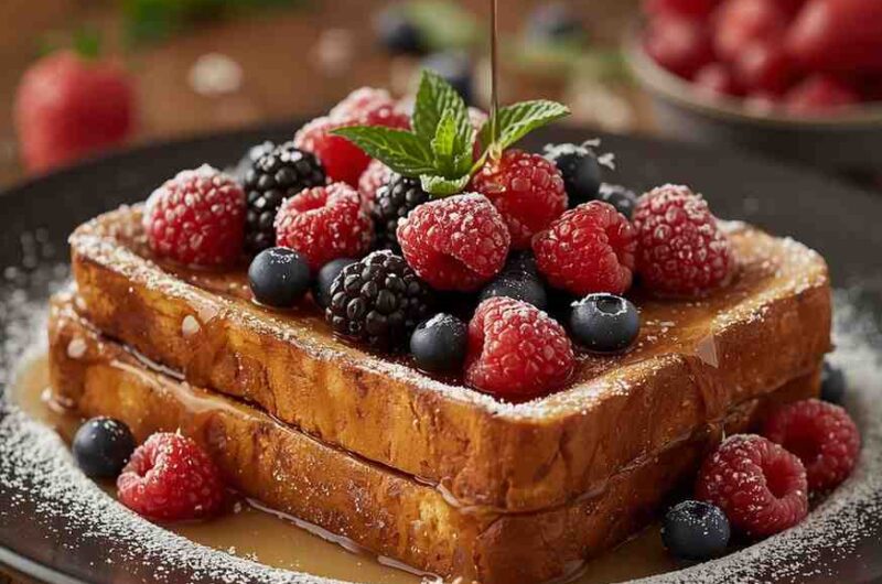 French Toast with Vanilla and Berries is the definition of a breakfast indulgence done right — golden, crisp edges, soft custardy centers, fragrant vanilla notes, and a burst of fruity freshness. It’s comforting, beautiful, and satisfying in every bite.