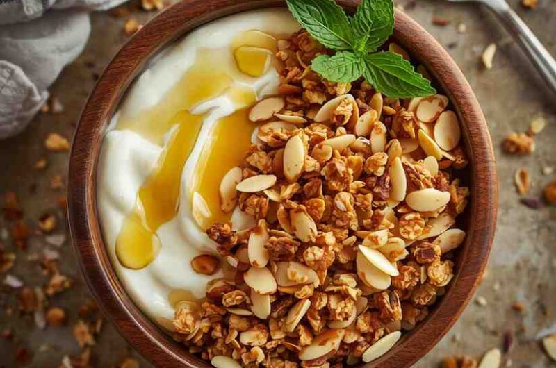There’s something truly satisfying about starting your day with a bowl of crunchy honey almond granola paired with creamy Greek yogurt. This wholesome breakfast (or snack) combines the natural sweetness of honey, the nutty crunch of almonds, and the richness of toasted oats — balanced beautifully by the cool, tangy smoothness of Greek yogurt.
