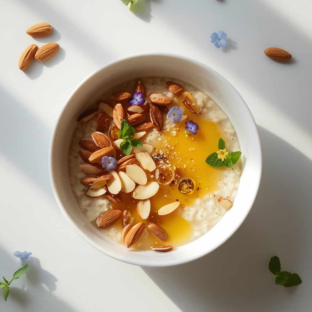 - Step 5: Serve : Stir the oats, add more milk if needed, and garnish with additional almonds and a drizzle of honey.