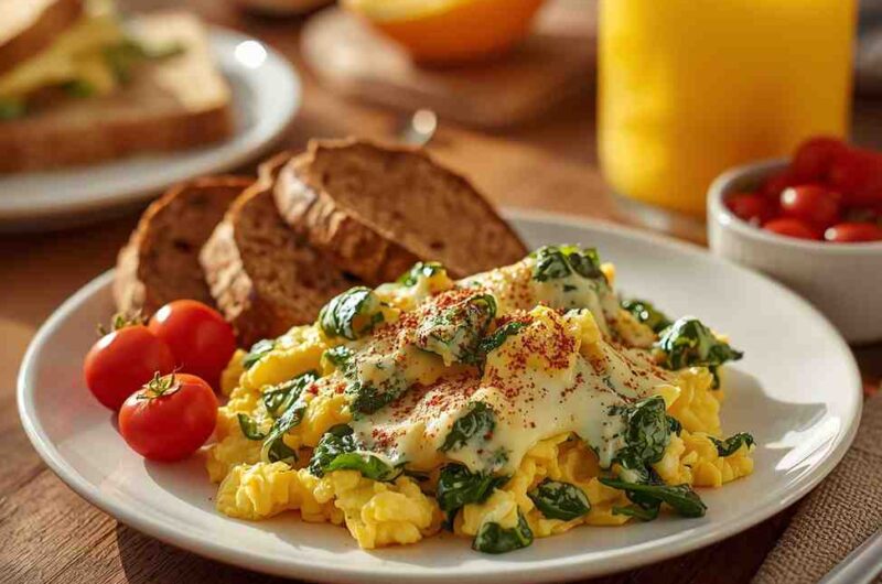 Scrambled Eggs with Spinach and Cheese is a simple, flavorful, and nutritious breakfast that elevates a classic scramble with fresh greens and melted cheese. Quick to prepare and endlessly customizable, it’s a dish that combines comfort, health, and indulgence in every bite. Perfect for any morning, this recipe is a must-try for anyone seeking a delicious and satisfying start to the day.