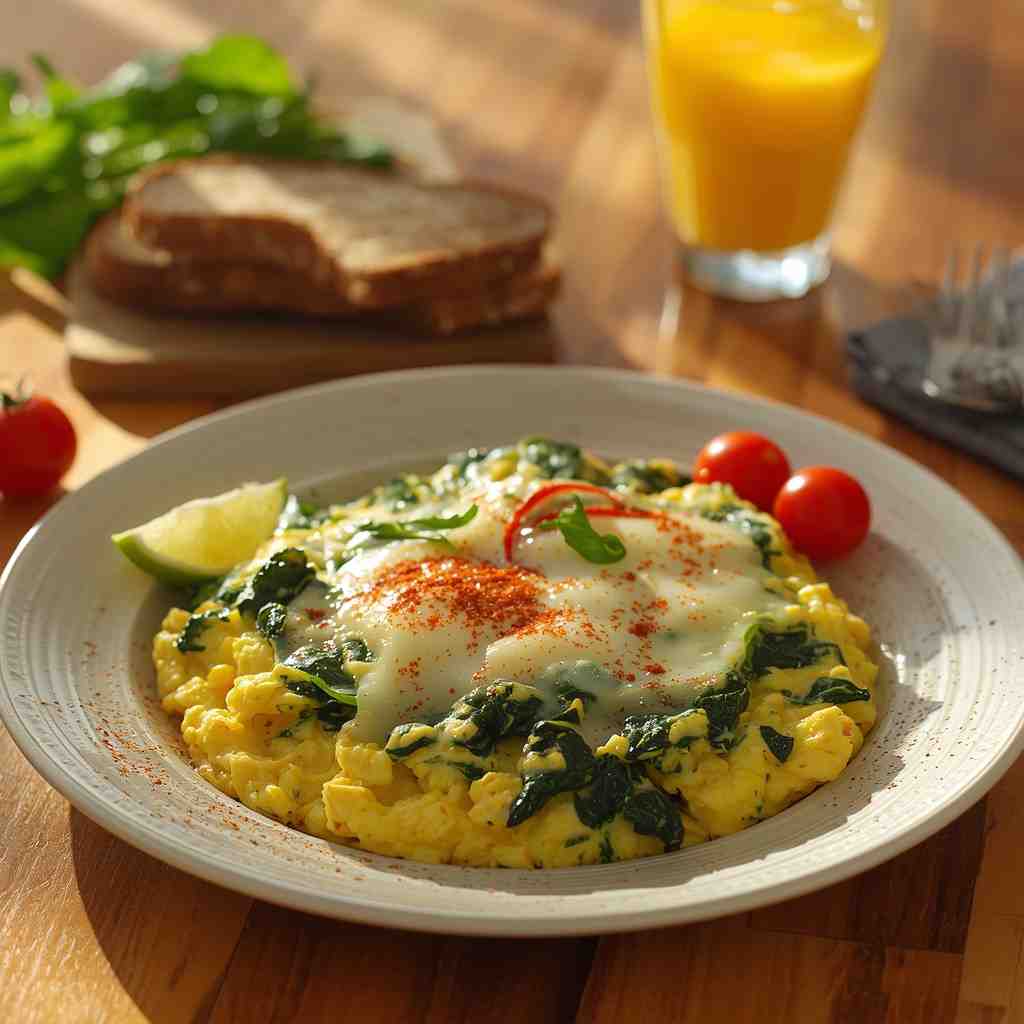 Scrambled Eggs with Spinach and Cheese is a classic breakfast dish elevated with vibrant greens and creamy, melted cheese. This recipe is quick, nutritious, and packed with flavor, making it perfect for a busy morning or a leisurely brunch.