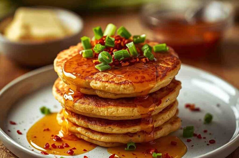 Sweet Corn Pancakes with Chili Honey are a delightful fusion of savory and sweet—crispy-edged, fluffy corn pancakes drizzled with warm, spicy-sweet honey. These pancakes are a brilliant twist on the traditional breakfast stack, infused with the natural sweetness of corn kernels and balanced by the fiery kick of chili honey.