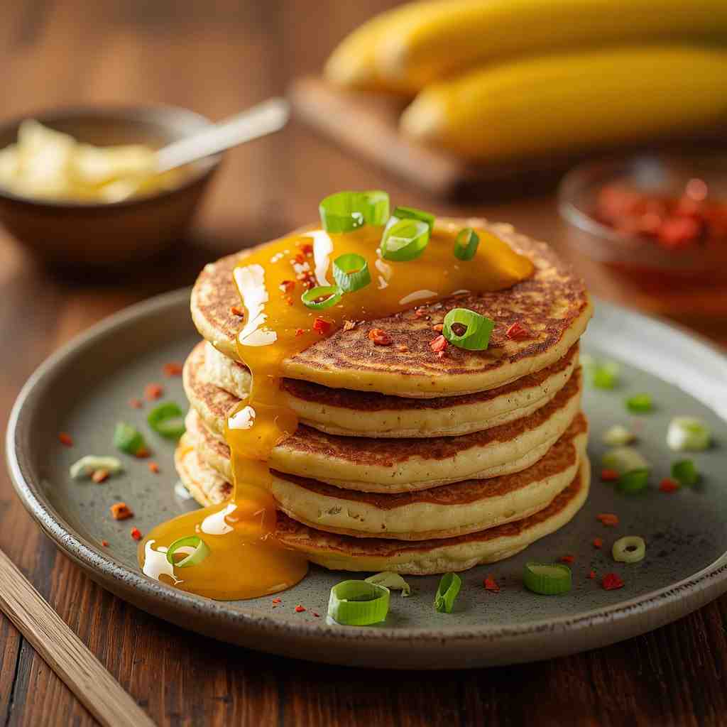 • Step 5: Serve and Drizzle : Stack the warm pancakes on a plate. Drizzle generously with chili honey. Garnish with fresh herbs or a dollop of sour cream if desired.