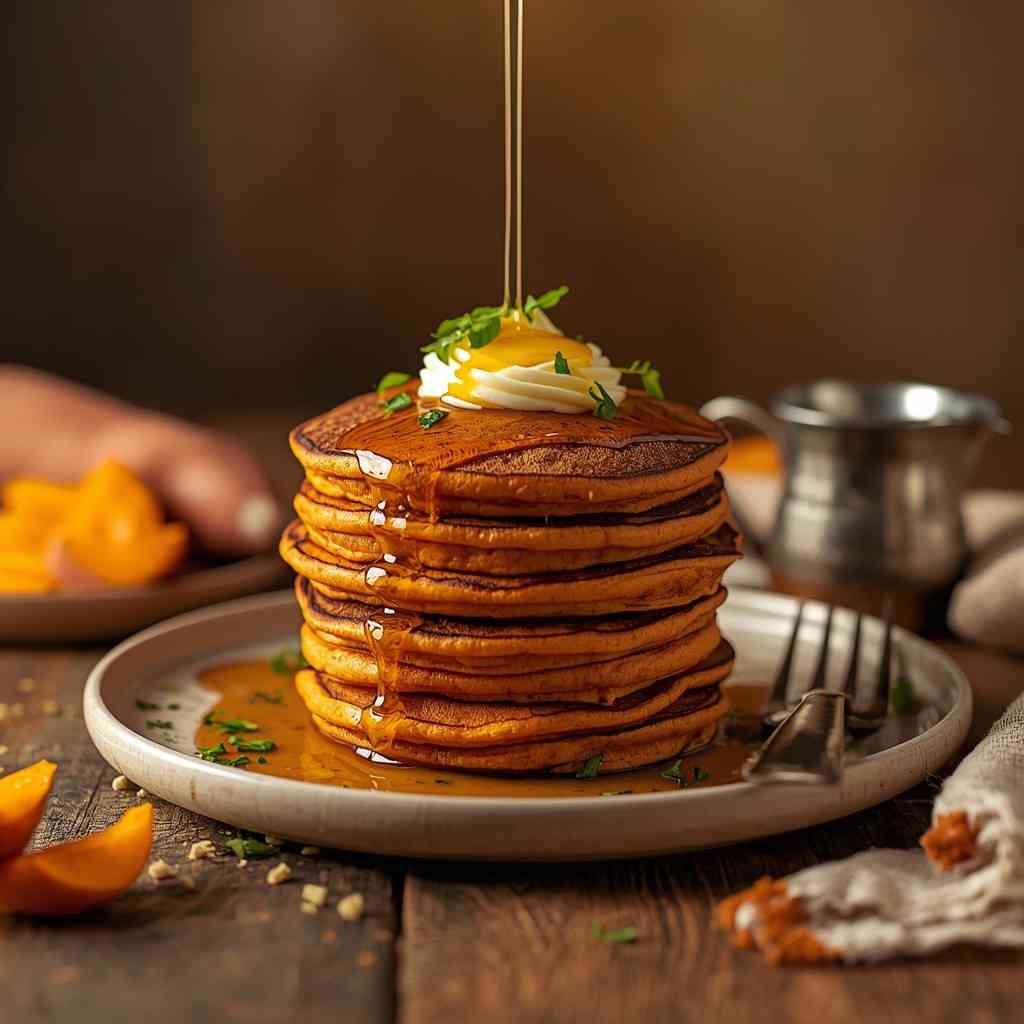 Perfect for a weekend brunch, a cozy breakfast, or a festive occasion, these pancakes are both indulgent and nourishing. The addition of sweet potato not only adds flavor and color but also provides extra vitamins, fiber, and moisture, making each bite wonderfully satisfying.