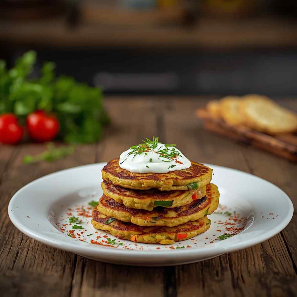 - Step 5: Serve : Serve the pancakes warm, drizzled with yogurt sauce or served alongside for dipping. Garnish with extra herbs or a sprinkle of chili flakes for a vibrant finish.