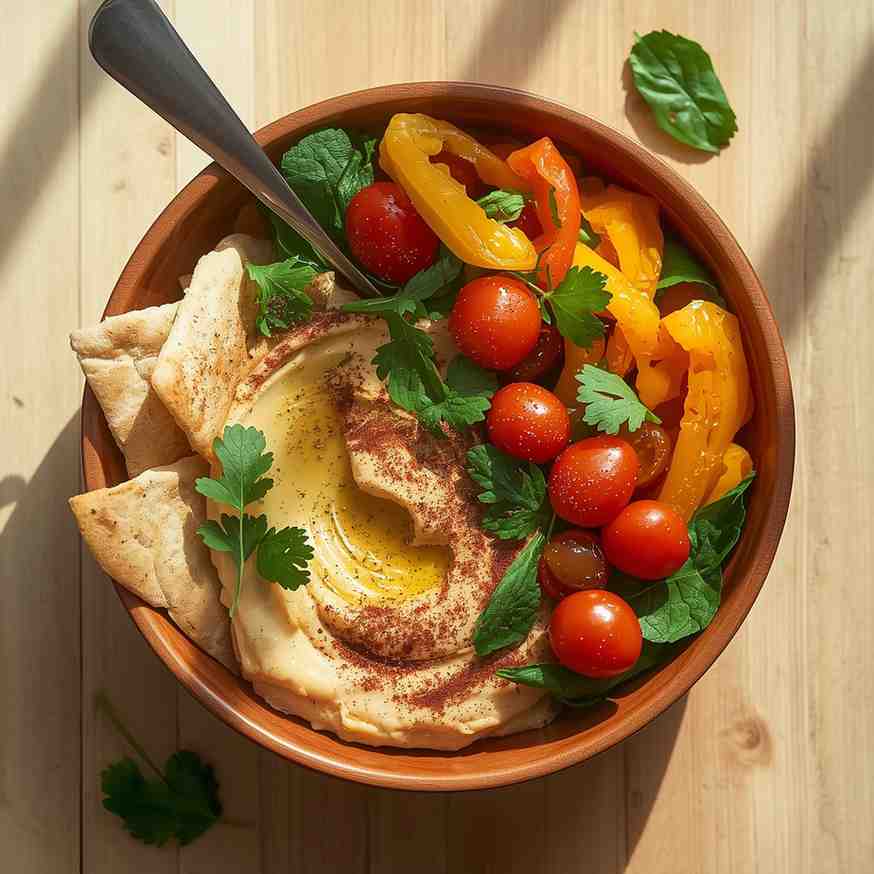 - Step 4: Assemble the Bowl : Spoon hummus onto one side of the bowl. Add quinoa or rice next to it. Arrange cooked or raw veggies neatly around the hummus. Place the egg on top (if using). Add avocado slices and sprinkle with herbs and seeds. Finish with a drizzle of olive oil, lemon juice, and optional paprika.