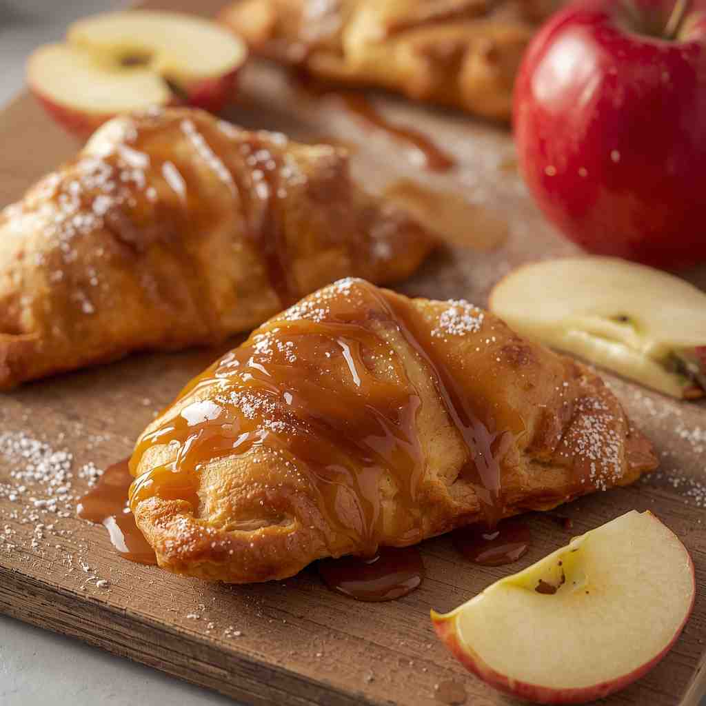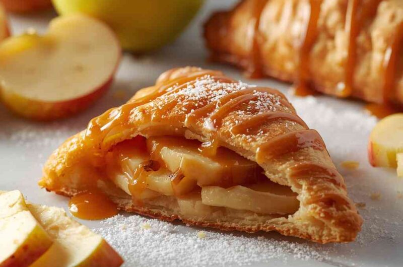 Apple Turnovers with Caramel Drizzle are the epitome of cozy indulgence — flaky golden pastry pockets filled with warm spiced apples and topped with a silky caramel drizzle. Every bite melts in your mouth, combining the buttery crispness of puff pastry with the gooey sweetness of cinnamon-spiced apple filling.