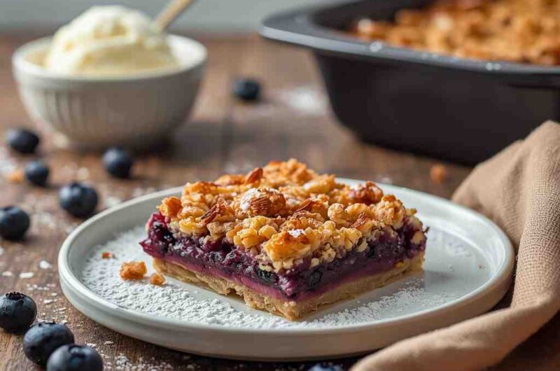 This Blueberry Crumble Bars recipe is a must-try because it’s both effortless and crowd-pleasing. The bars are portable, easy to store, and can be made ahead of time — perfect for parties, bake sales, or busy mornings. The balance of tart blueberries and sweet buttery crust makes it universally loved.