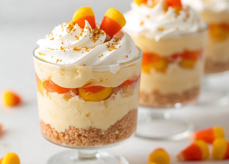 Candy Corn Cheesecake Parfaits are a fun, colorful, and indulgent Halloween dessert that’s easy to assemble and perfect for parties. Their creamy layers, crunchy crust, and candy corn topping make them both visually stunning and deliciously festive. Ideal for individual servings, these parfaits will be the centerpiece of any fall or Halloween dessert table.