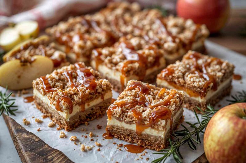 Caramel Apple Cheesecake Bars with Streusel Topping are the ultimate autumn dessert, combining the tender, buttery goodness of cheesecake with the sweet-tart flavor of apples and the indulgence of caramel. The streusel topping adds a delightful crunch, making each bite a perfect balance of creamy, fruity, and crumbly textures.