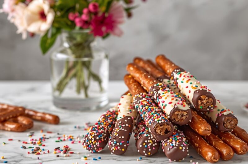 Chocolate Dipped Pretzel Rods with Sprinkles are a fun, versatile, and irresistible treat that combines sweet and salty in every bite. Perfect for parties, holidays, or gifting, these pretzels are simple to make, highly customizable, and visually appealing. Whether decorated for Halloween, Christmas, or a birthday celebration, they’re sure to delight both kids and adults.