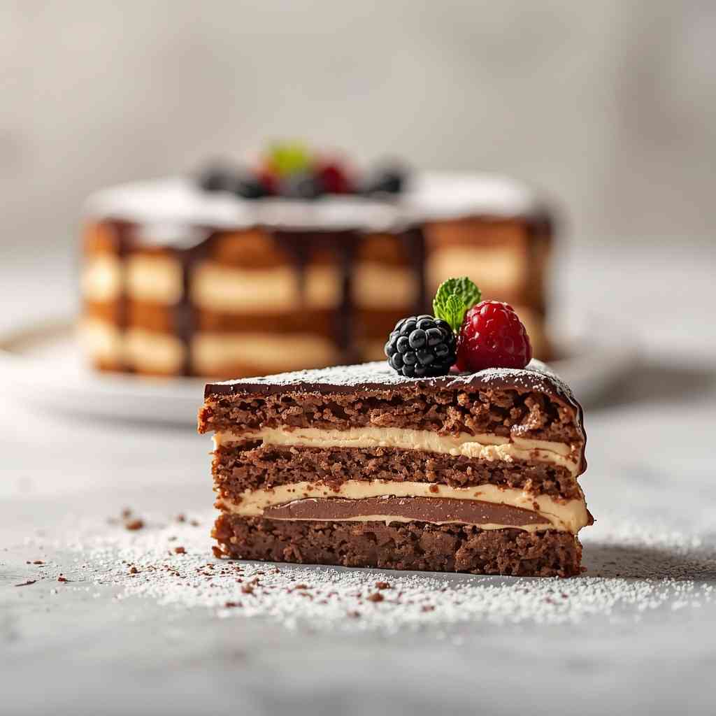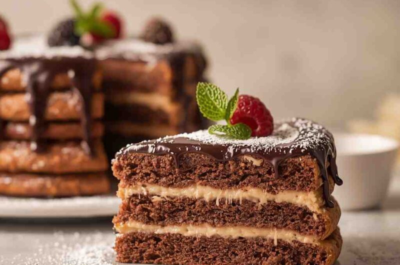 The cake’s custard-soaked layers mimic the texture of pastry, while the chocolate topping adds a glossy, indulgent finish. Perfect for special occasions, potlucks, or an elegant weekend treat, this dessert is as easy to assemble as it is delicious.