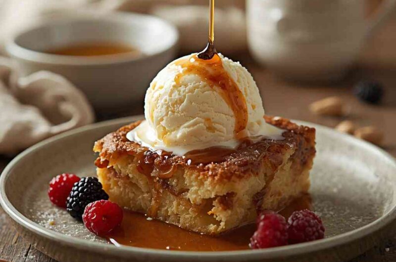 Classic Bread Pudding with Caramel Drizzle is proof that simple ingredients can create unforgettable desserts. Its soft, custardy center, caramelized crust, and luscious caramel topping make it both comforting and elegant. Whether served warm from the oven or chilled the next day, every bite delivers nostalgia and sweetness in perfect harmony.