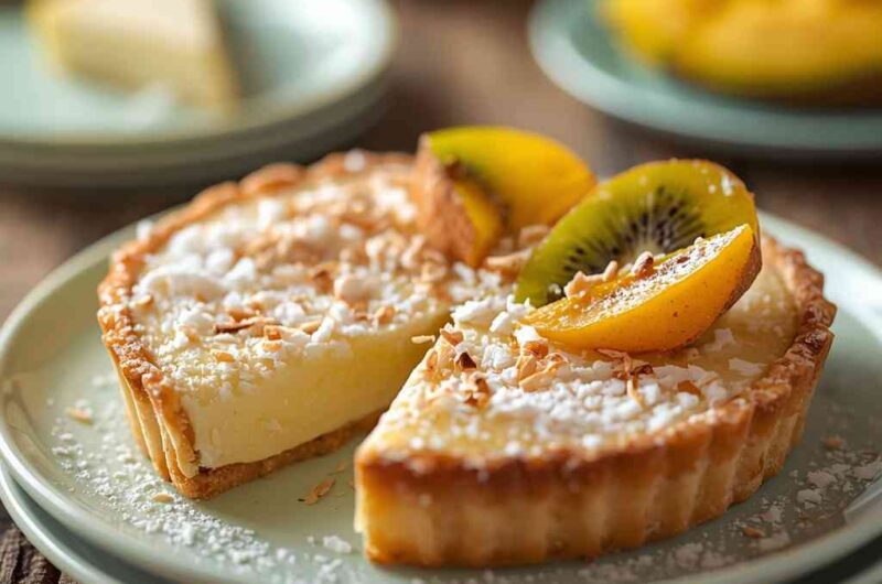 Coconut Custard Tart is a dreamy dessert that perfectly balances creamy richness and tropical sweetness. It features a buttery, flaky tart crust filled with a smooth, velvety coconut custard that’s baked to golden perfection. The result is a dessert that’s both comforting and elegant — every bite offers a delicate blend of creamy coconut, warm vanilla, and crisp pastry.