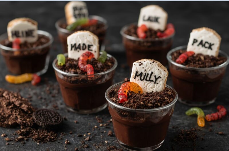 - Step 4: Decorate the Graveyard: Write “RIP” on Milano cookies using icing to make tombstones. Insert a tombstone into each pudding cup. Add gummy worms, candy pumpkins, or bones for extra spooky detail.