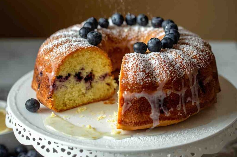 Perfect for afternoon tea, brunch, or a special dessert, this cake offers a soft crumb, a rich buttery flavor, and bursts of blueberry throughout. The lemon glaze drizzled on top adds a glossy, tangy finish that complements the sweetness of the cake beautifully.