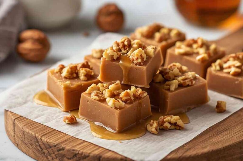 Its smooth, melt-in-your-mouth texture paired with the nutty flavor of walnuts makes it irresistibly delicious. With just a few simple ingredients, this treat can be whipped up quickly, offering a gourmet feel with minimal effort. It’s a must-have recipe for anyone who loves classic fudge with a delightful maple twist.