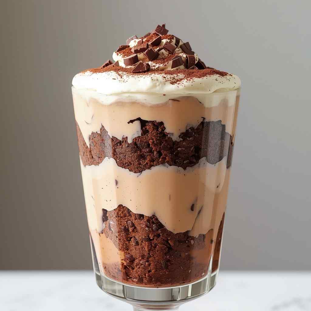 Mocha Trifle with Chocolate Layers is an indulgent dessert that combines the rich, velvety flavors of coffee and chocolate in a stunning layered presentation. Each spoonful delivers the perfect balance of creamy mocha mousse, fudgy brownie chunks, silky chocolate pudding, and fluffy whipped cream.