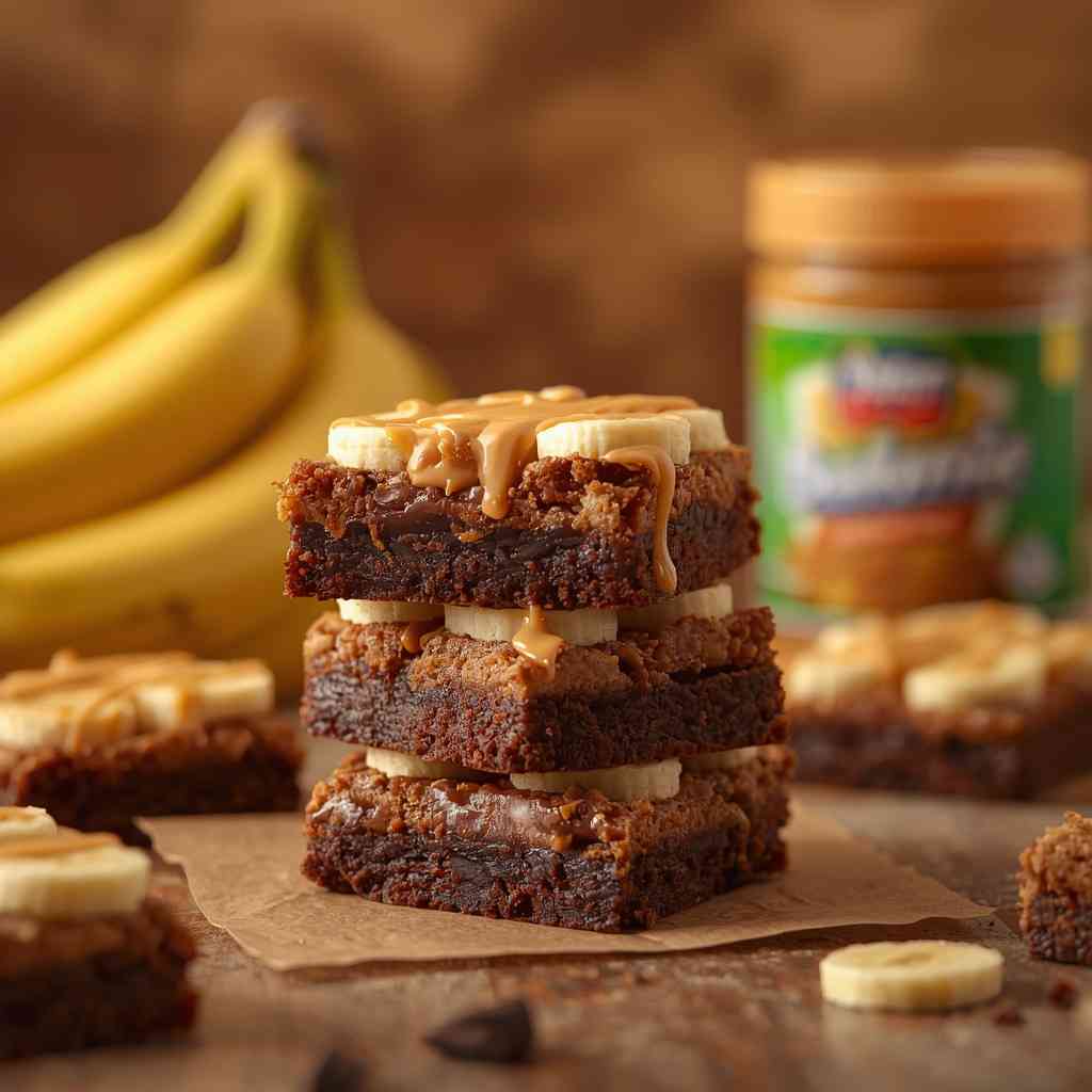 Serve Peanut Butter Banana Brownies at room temperature, optionally with a scoop of vanilla ice cream or a drizzle of melted chocolate. They also pair wonderfully with coffee, tea, or a glass of milk for a comforting treat.