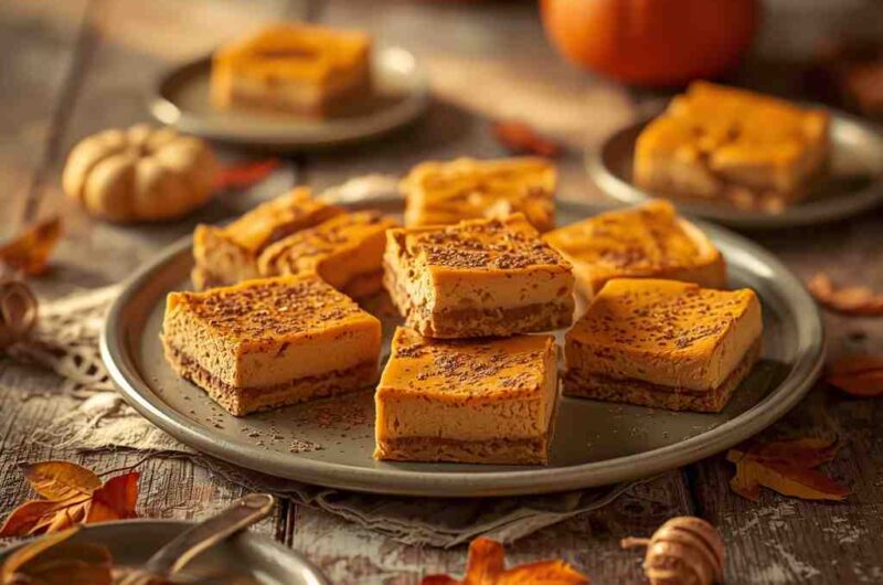 Pumpkin Cheesecake Bars are the perfect fusion of two much-loved desserts: the creaminess of classic cheesecake and the warm, cozy flavor of pumpkin pie. These bars have a buttery graham cracker crust, a silky-smooth pumpkin cheesecake filling, and a tender texture that melts on the tongue.