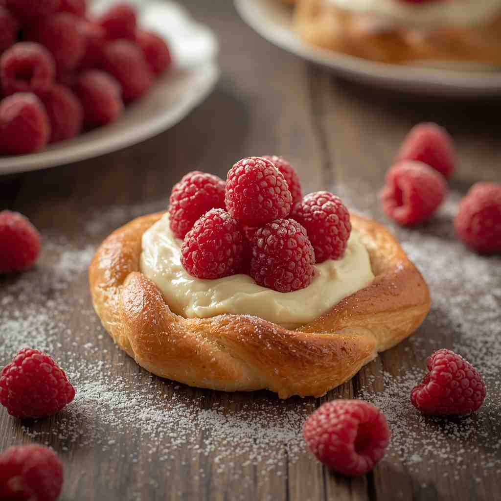 A Raspberry Cream Cheese Danish is a luscious pastry made from buttery, flaky puff pastry filled with smooth cream cheese and tangy raspberry jam, then baked until golden and topped with a sweet vanilla glaze.