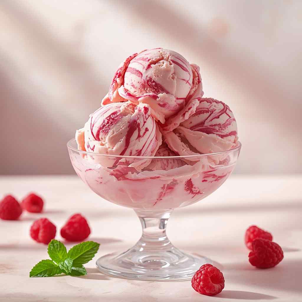 Raspberry Ripple Ice Cream is a classic, indulgent dessert that combines creamy vanilla ice cream with vibrant, sweet-tart raspberry swirls. The luscious, smooth ice cream contrasts beautifully with the tangy raspberry sauce, creating a refreshing and visually stunning treat.